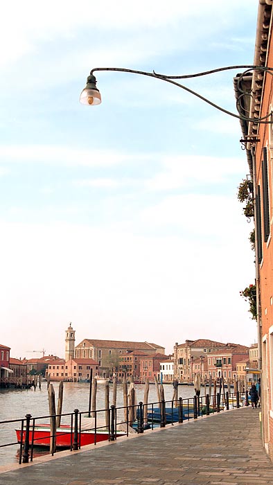 Дома здесь на два этажа ниже чем Венеции, туристов, и соответсвенно, шуму также в два раза меньше, цены на всякие стеклянные штучки - тоже слегка пониже.
