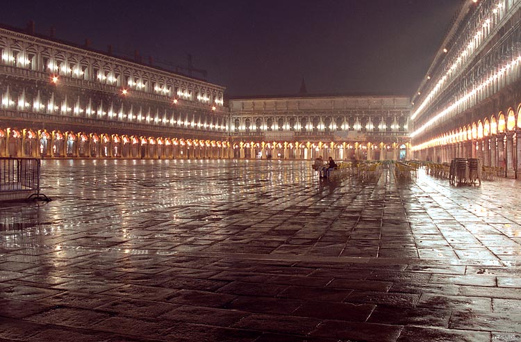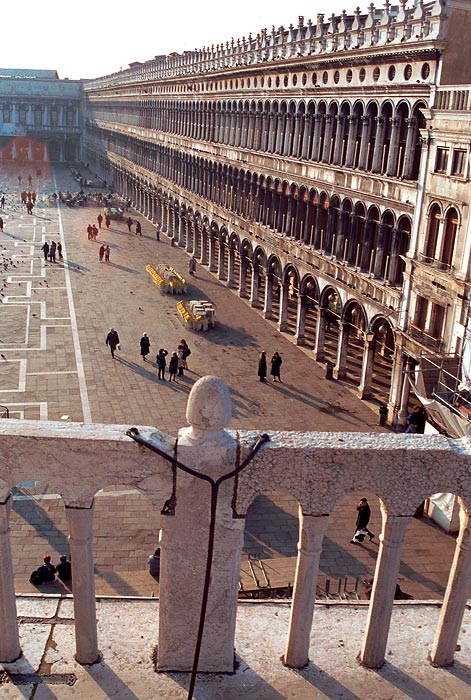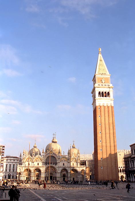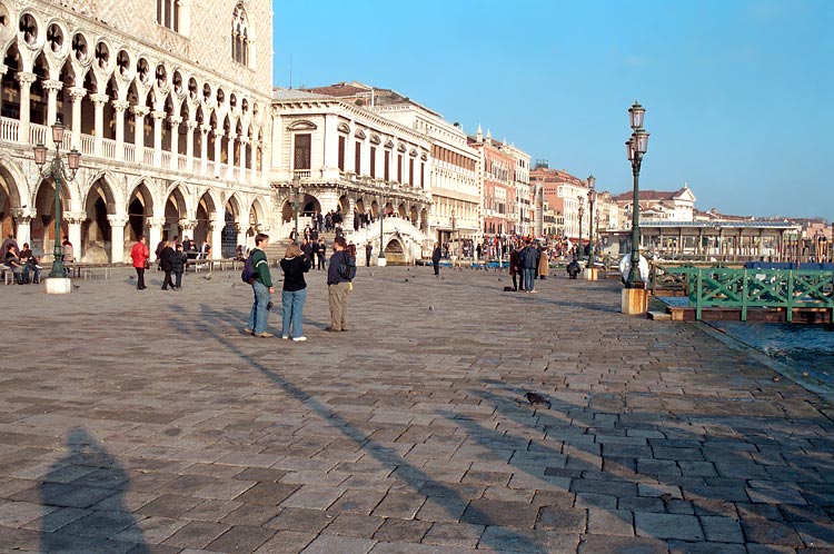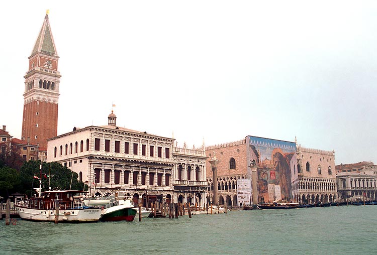 Воспоминание детства: учебник истории 3 или 4 класса, порванный пополам как раз на тусклой серенькой картинке (о, советская полиграфия!), изображающей средне-вековую Венецию: Дворец Дожей, площадь Сан-Марко и Компанилла. Полная абстракция - но картинка красивая. Из всего курса школьной истории почему-то запомнилась только она (и еще картина "Иван Грозный и его сын Иван") .